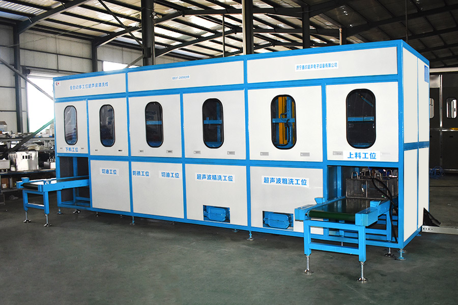 該設(shè)備有自動(dòng)上下料及轉(zhuǎn)角系統(tǒng)、超聲波清洗系統(tǒng),自動(dòng)拋動(dòng)、自動(dòng)溢流和油污分離裝置,噴淋系統(tǒng)、自動(dòng)高壓切水系統(tǒng)、自動(dòng)烘干系統(tǒng)。機(jī)械手自動(dòng)輸送系統(tǒng)采用高精度直線導(dǎo)軌配合高精度位置檢測(cè)傳感器,機(jī)械手可以準(zhǔn)確的實(shí)現(xiàn)工件的抓取和放置。自動(dòng)進(jìn)排液和自動(dòng)加溫系統(tǒng)完全實(shí)現(xiàn)了無(wú)人干預(yù),自動(dòng)運(yùn)行,很大程度上降低了工人的勞動(dòng)強(qiáng)度。先進(jìn)的霧氣處理系統(tǒng)可以將清洗時(shí)產(chǎn)生的霧氣冷凝回流,空氣經(jīng)過(guò)濾和活性炭吸附后排出。